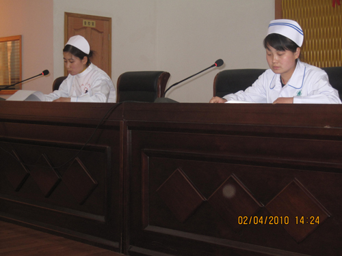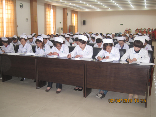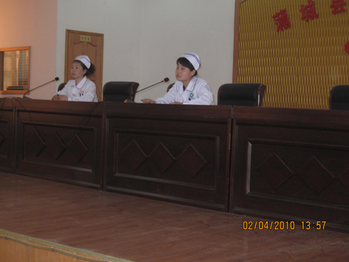 2010年4月2日下午,护理部在学术报告厅举行护理业务讲课,护理部主任党艳艳主持,外科护士长刘亚英主讲普外科患者的健康教育及整体护理,骨科二副护士长王萍主讲如何提高护士的素质,全体护理人员参加。