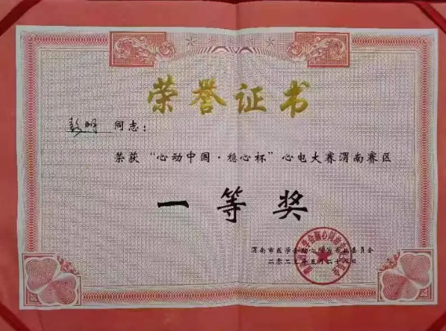 由渭南市医学会脑心同治专业委员会组织的“心动中国•稳心杯”心电大赛在渭南拉开帷幕,共有全市县级医院组成的八支代表队参赛。我院功能科朱瑶和心病科曹晓鹏及彭明三位医师代表医院参赛,比赛程序分为必答题、抢答题及冒险题三个环节,赛场气氛紧张激烈,丰富的赛题,精彩的点评,让选手及现场观众受益匪浅。经过激烈角逐,最终凭借扎实的基础,团结协作,稳定的发挥,获得最佳成绩“一等奖”。本次竞赛活动提供了开阔眼界的平台,提高了参赛人员的心电专业技术水平和临床医疗服务能力。