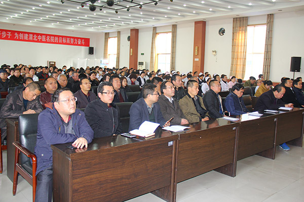 蒲中医网讯12月15日下午,在我院学术厅召开了“蒲城县中医药学会第五届会员大会暨《中医药法》宣讲培训会”。陕西中医药大学附属医院副院长、中西医临床医学系主任侯俊明教授、蒲城县民政局民间组织管理股股长任雪婷、蒲城县科协学会部部长索亚娟、蒲城县卫计局副局长尚晓刚、县中医药学会第四届理事会副会长苏忠义、万跃斌、王进德、万松源、秘书长种应征、全县各医疗机构的院长、中医药科主任、中医药工作者等200余人参加了会议。县中医药学会第四届理事会副会长万松源主持会议